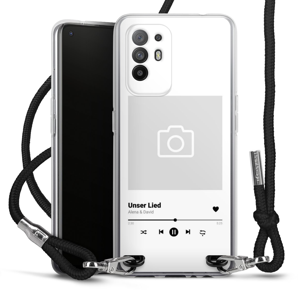 For our Carry Case we are using our advanced direct printing technology. The backside is fully printable, the frame is left unprinted. You can order the phone case without print, printed completely or also with a partial print. Choose one of our exclusive, pre-made shop designs or let your creativity shine and create your very own unique design with your pictures, overlays and text.