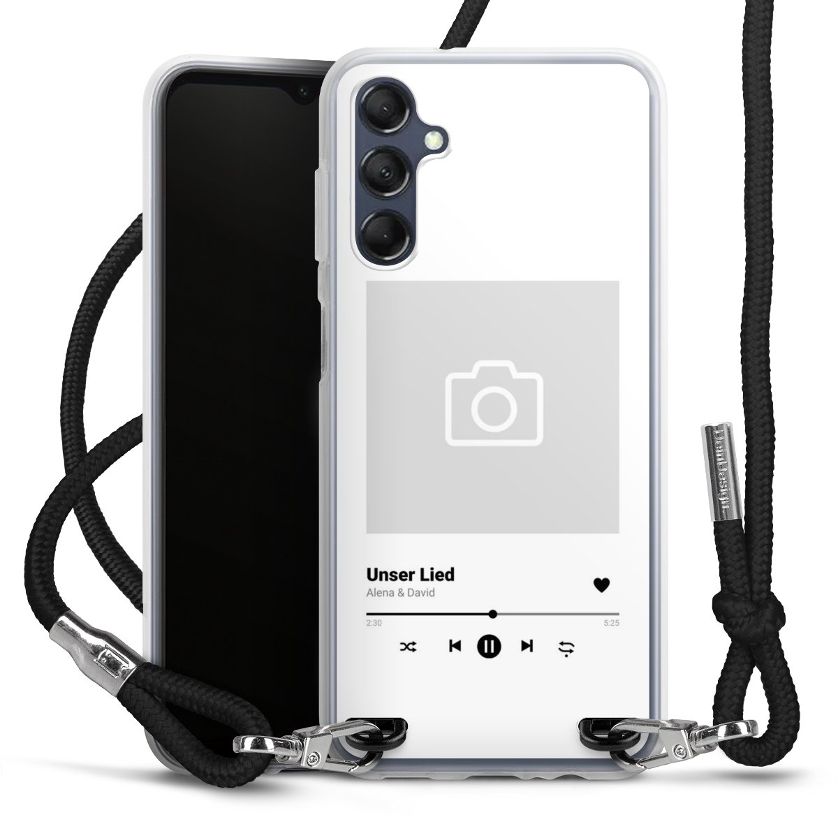 For our Carry Case we are using our advanced direct printing technology. The backside is fully printable, the frame is left unprinted. You can order the phone case without print, printed completely or also with a partial print. Choose one of our exclusive, pre-made shop designs or let your creativity shine and create your very own unique design with your pictures, overlays and text.