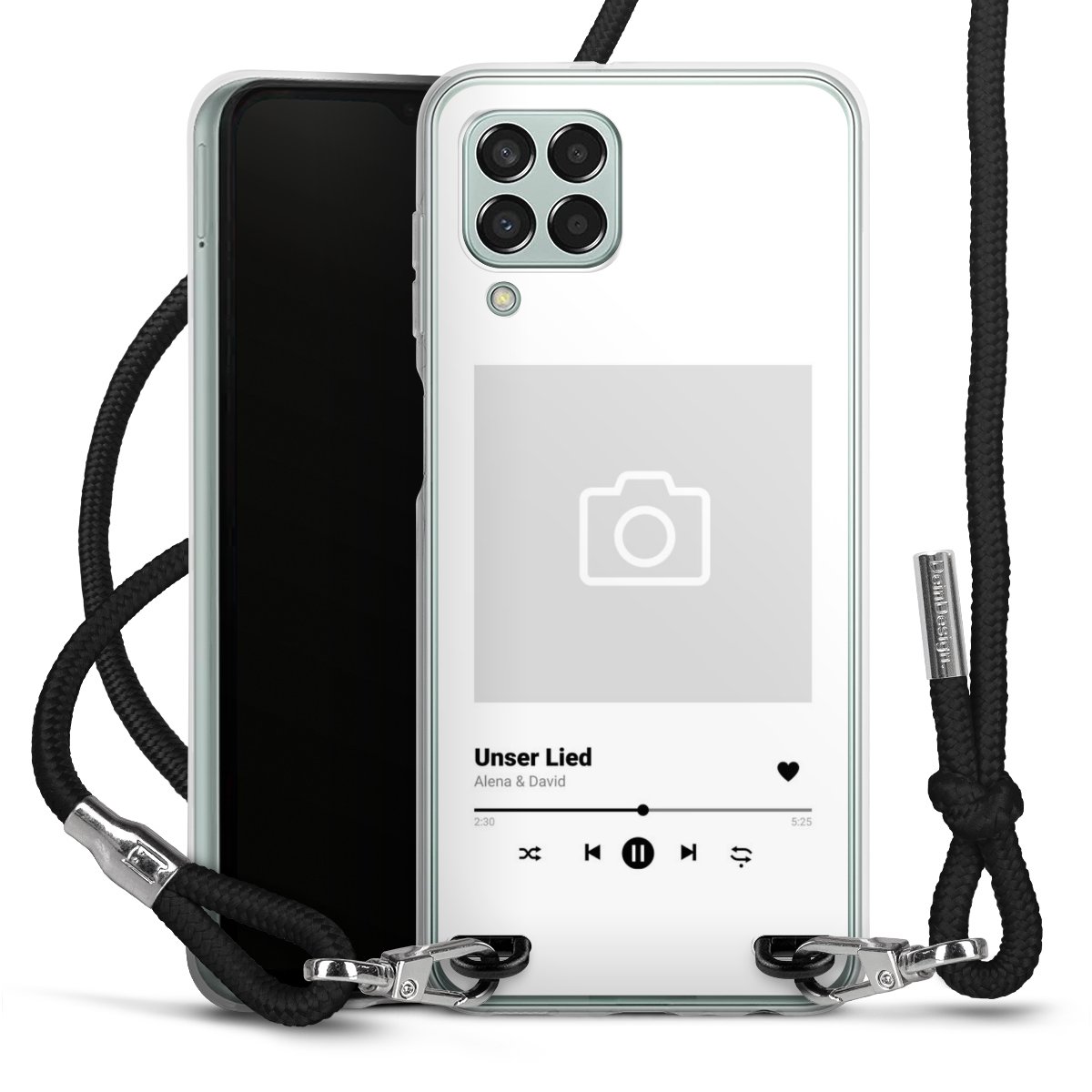 For our Carry Case we are using our advanced direct printing technology. The backside is fully printable, the frame is left unprinted. You can order the phone case without print, printed completely or also with a partial print. Choose one of our exclusive, pre-made shop designs or let your creativity shine and create your very own unique design with your pictures, overlays and text.