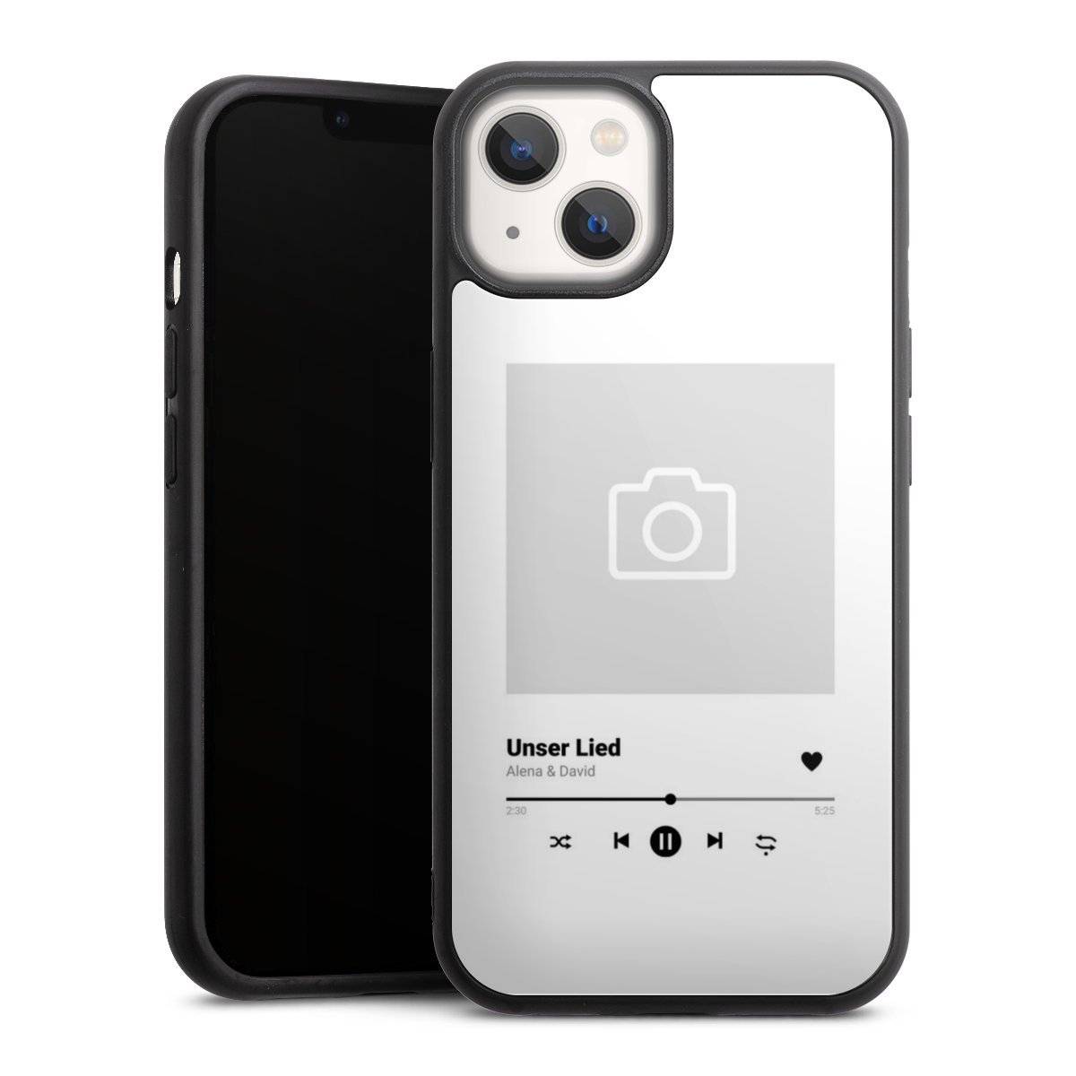 We print your design on the back of the glass inlay and then connect it firmly to the silicone case ,so that nothing sticks out and everything looks like it was cast from one piece. In addition, the sturdy glass element is protected from scratches by an additional coating and ensures a slight reflection on the shiny print image.