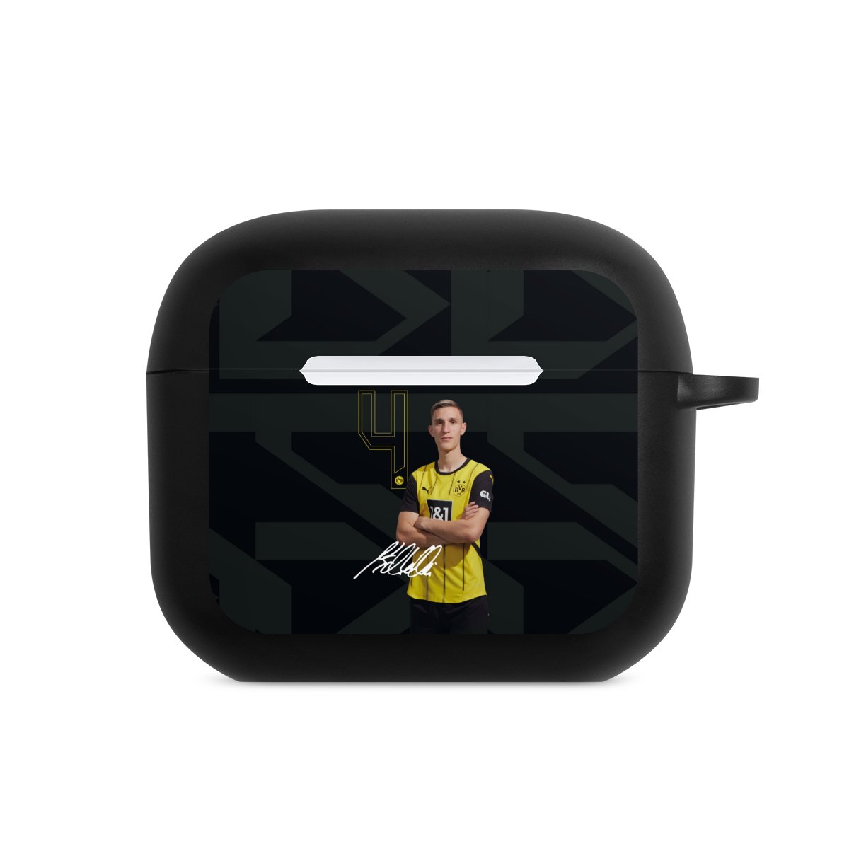 The AirPods Case is your handy and safe storage for your AirPods or AirPods Pro. Thanks to the attached snap hook you can easily add the AirPods Case to your phone necklace, keychain or bag. Wireless Charging is still possible. The case is made from TPU, a very long lasting and shatterproof material. The case is available in black and white. The best part about the case: you can customize the frontside with your own designs or one of our pre-made prints!
