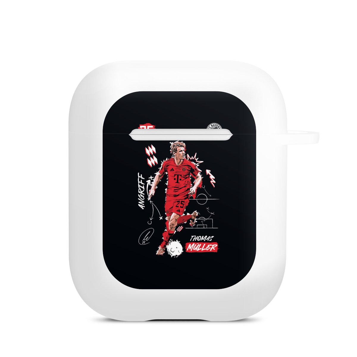 The AirPods Case is your handy and safe storage for your AirPods or AirPods Pro. Thanks to the attached snap hook you can easily add the AirPods Case to your phone necklace, keychain or bag. The wireless charging functionality can be still used at any time. The case is made from TPU, a very long lasting and shatterproof material. The case is available in black and white. The best part about the case: you can customize the frontside with your own designs or one of our pre-made prints!