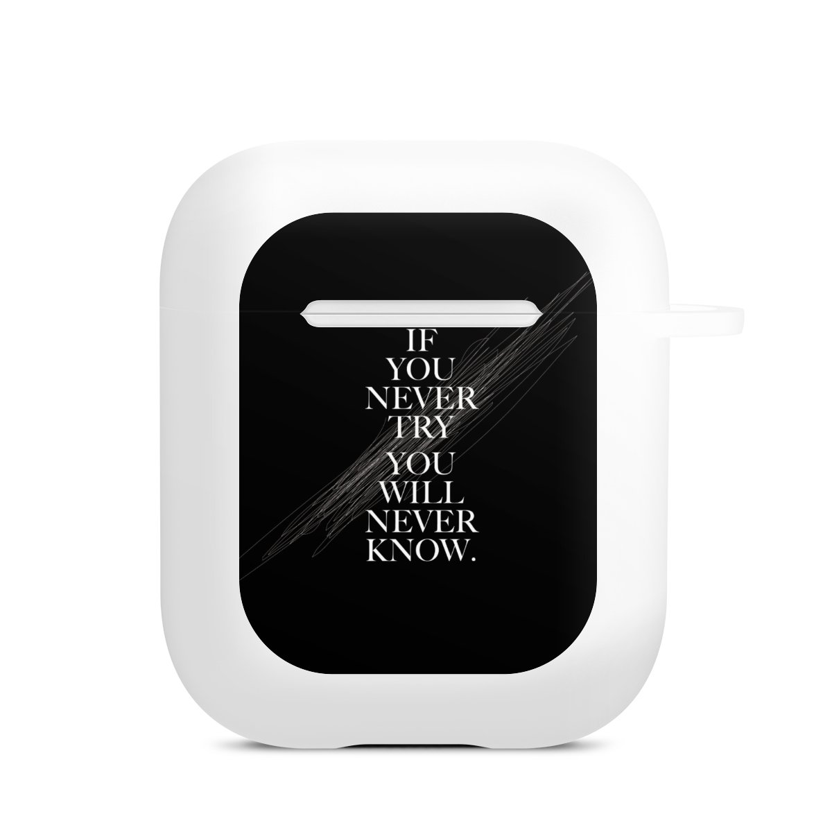 The AirPods Case is your handy and safe storage for your AirPods or AirPods Pro. Thanks to the attached snap hook you can easily add the AirPods Case to your phone necklace, keychain or bag. The wireless charging functionality can be still used at any time. The case is made from TPU, a very long lasting and shatterproof material. The case is available in black and white. The best part about the case: you can customize the frontside with your own designs or one of our pre-made prints!