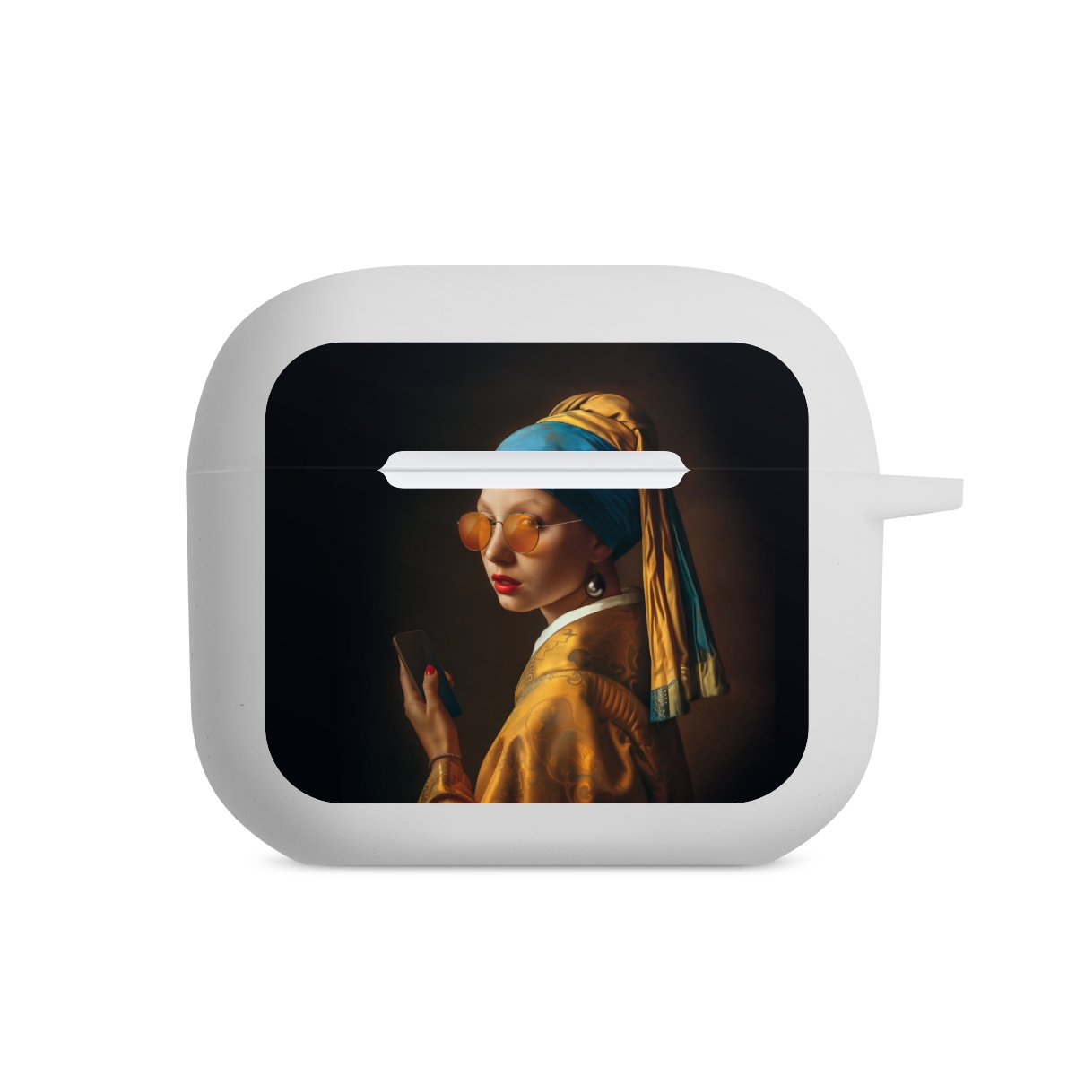 The AirPods Case is your handy and safe storage for your AirPods or AirPods Pro. Thanks to the attached snap hook you can easily add the AirPods Case to your phone necklace, keychain or bag. The wireless charging functionality can be still used at any time. The case is made from TPU, a very long lasting and shatterproof material. The case is available in black and white. The best part about the case: you can customize the frontside with your own designs or one of our pre-made prints!