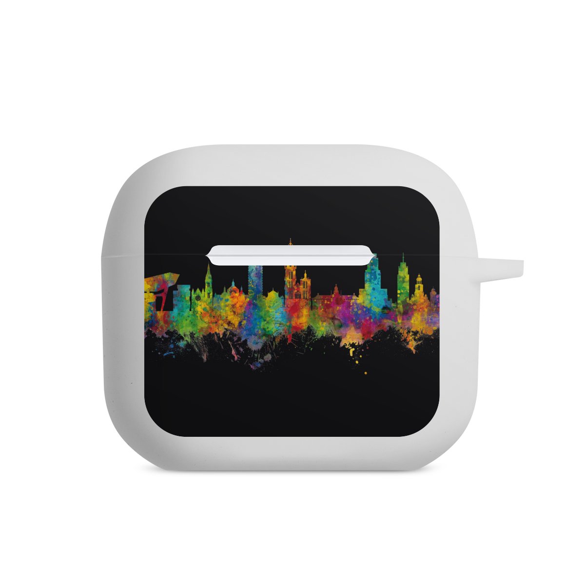 The AirPods Case is your handy and safe storage for your AirPods or AirPods Pro. Thanks to the attached snap hook you can easily add the AirPods Case to your phone necklace, keychain or bag. The wireless charging functionality can be still used at any time. The case is made from TPU, a very long lasting and shatterproof material. The case is available in black and white. The best part about the case: you can customize the frontside with your own designs or one of our pre-made prints!