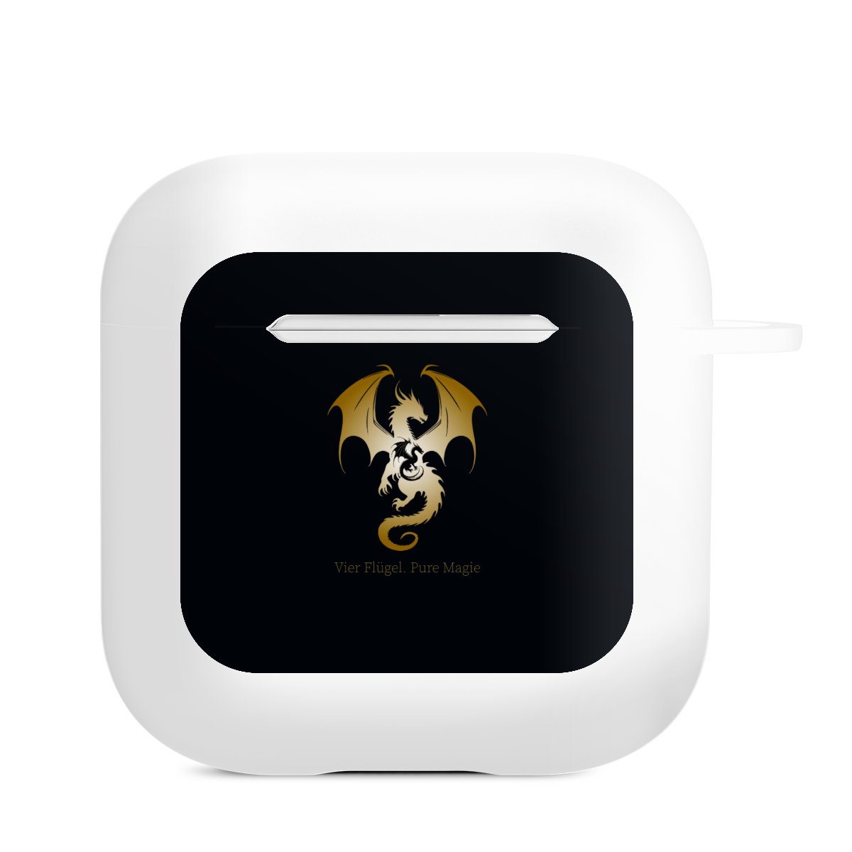 The AirPods Case is your handy and safe storage for your AirPods or AirPods Pro. Thanks to the attached snap hook you can easily add the AirPods Case to your phone necklace, keychain or bag. The wireless charging functionality can be still used at any time. The case is made from TPU, a very long lasting and shatterproof material. The case is available in black and white. The best part about the case: you can customize the frontside with your own designs or one of our pre-made prints!