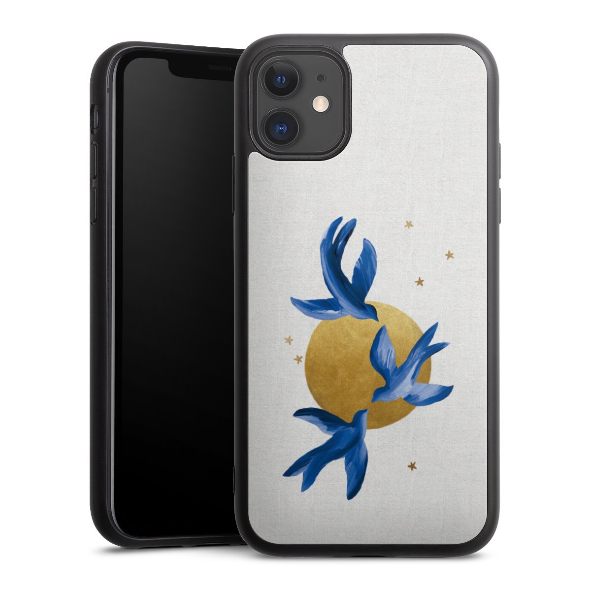 We print your design on the back of the glass inlay and then connect it firmly to the silicone case ,so that nothing sticks out and everything looks like it was cast from one piece. In addition, the sturdy glass element is protected from scratches by an additional coating and ensures a slight reflection on the shiny print image.