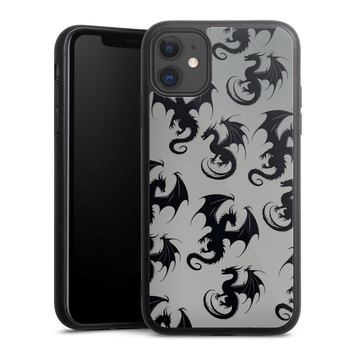 We print your design on the back of the glass inlay and then connect it firmly to the silicone case ,so that nothing sticks out and everything looks like it was cast from one piece. In addition, the sturdy glass element is protected from scratches by an additional coating and ensures a slight reflection on the shiny print image.