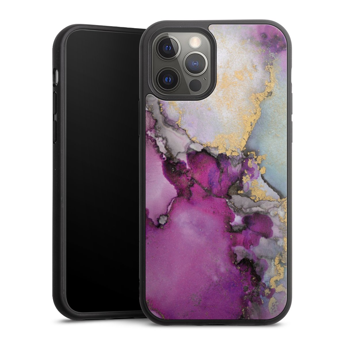 We print your design on the back of the glass inlay and then connect it firmly to the silicone case ,so that nothing sticks out and everything looks like it was cast from one piece. In addition, the sturdy glass element is protected from scratches by an additional coating and ensures a slight reflection on the shiny print image.