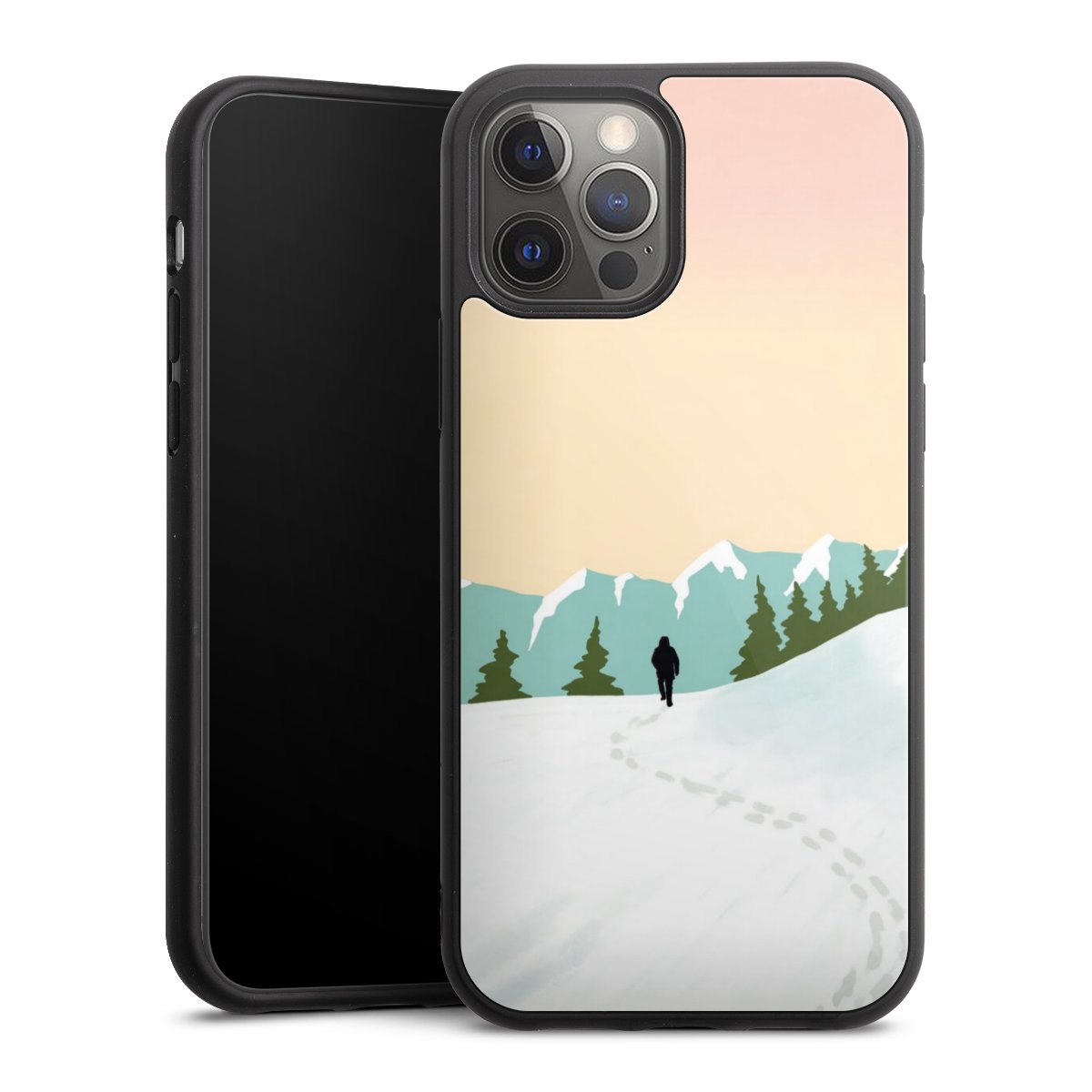 We print your design on the back of the glass inlay and then connect it firmly to the silicone case ,so that nothing sticks out and everything looks like it was cast from one piece. In addition, the sturdy glass element is protected from scratches by an additional coating and ensures a slight reflection on the shiny print image.