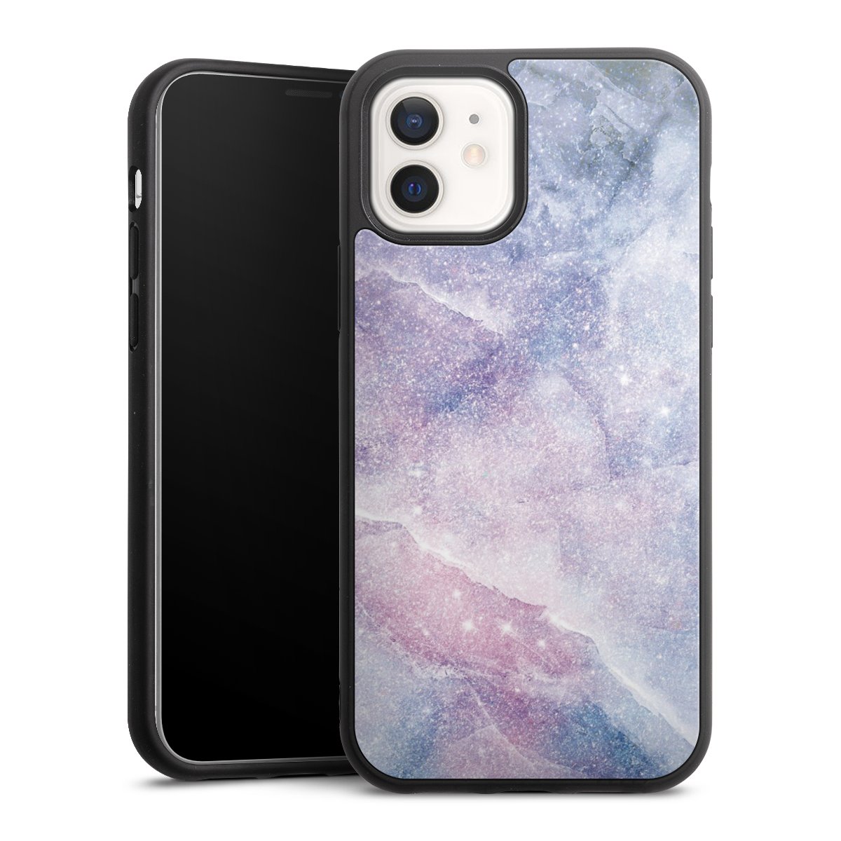 We print your design on the back of the glass inlay and then connect it firmly to the silicone case ,so that nothing sticks out and everything looks like it was cast from one piece. In addition, the sturdy glass element is protected from scratches by an additional coating and ensures a slight reflection on the shiny print image.