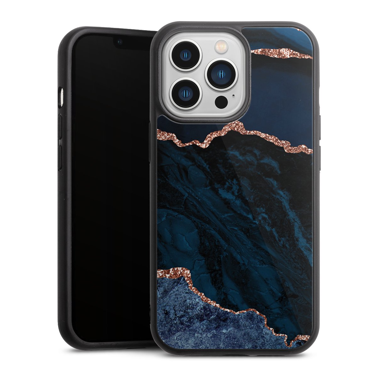 We print your design on the back of the glass inlay and then connect it firmly to the silicone case ,so that nothing sticks out and everything looks like it was cast from one piece. In addition, the sturdy glass element is protected from scratches by an additional coating and ensures a slight reflection on the shiny print image.