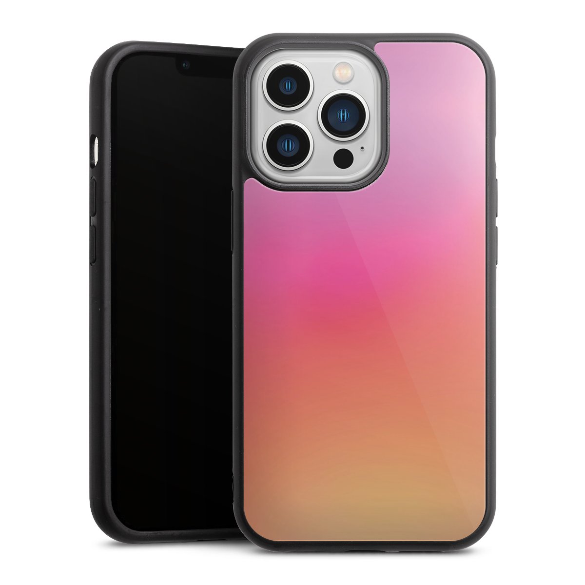 We print your design on the back of the glass inlay and then connect it firmly to the silicone case ,so that nothing sticks out and everything looks like it was cast from one piece. In addition, the sturdy glass element is protected from scratches by an additional coating and ensures a slight reflection on the shiny print image.