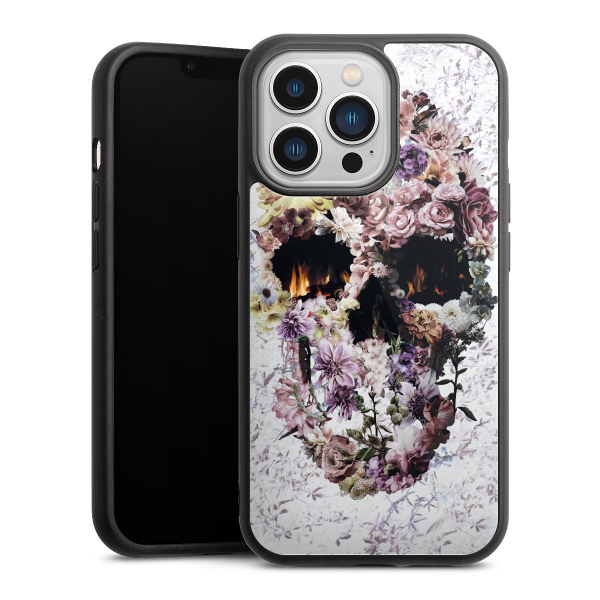 We print your design on the back of the glass inlay and then connect it firmly to the silicone case ,so that nothing sticks out and everything looks like it was cast from one piece. In addition, the sturdy glass element is protected from scratches by an additional coating and ensures a slight reflection on the shiny print image.