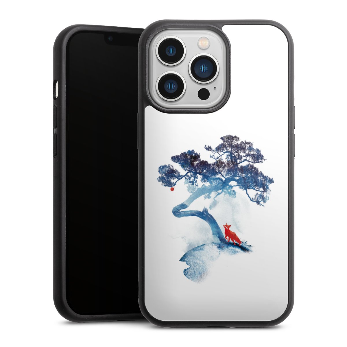 We print your design on the back of the glass inlay and then connect it firmly to the silicone case ,so that nothing sticks out and everything looks like it was cast from one piece. In addition, the sturdy glass element is protected from scratches by an additional coating and ensures a slight reflection on the shiny print image.