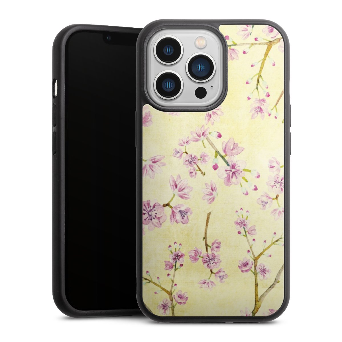 We print your design on the back of the glass inlay and then connect it firmly to the silicone case ,so that nothing sticks out and everything looks like it was cast from one piece. In addition, the sturdy glass element is protected from scratches by an additional coating and ensures a slight reflection on the shiny print image.