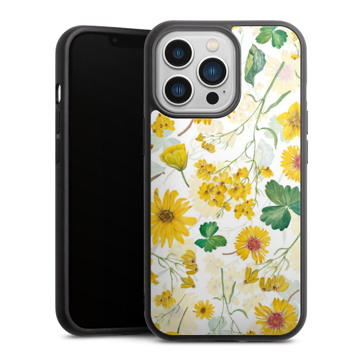We print your design on the back of the glass inlay and then connect it firmly to the silicone case ,so that nothing sticks out and everything looks like it was cast from one piece. In addition, the sturdy glass element is protected from scratches by an additional coating and ensures a slight reflection on the shiny print image.