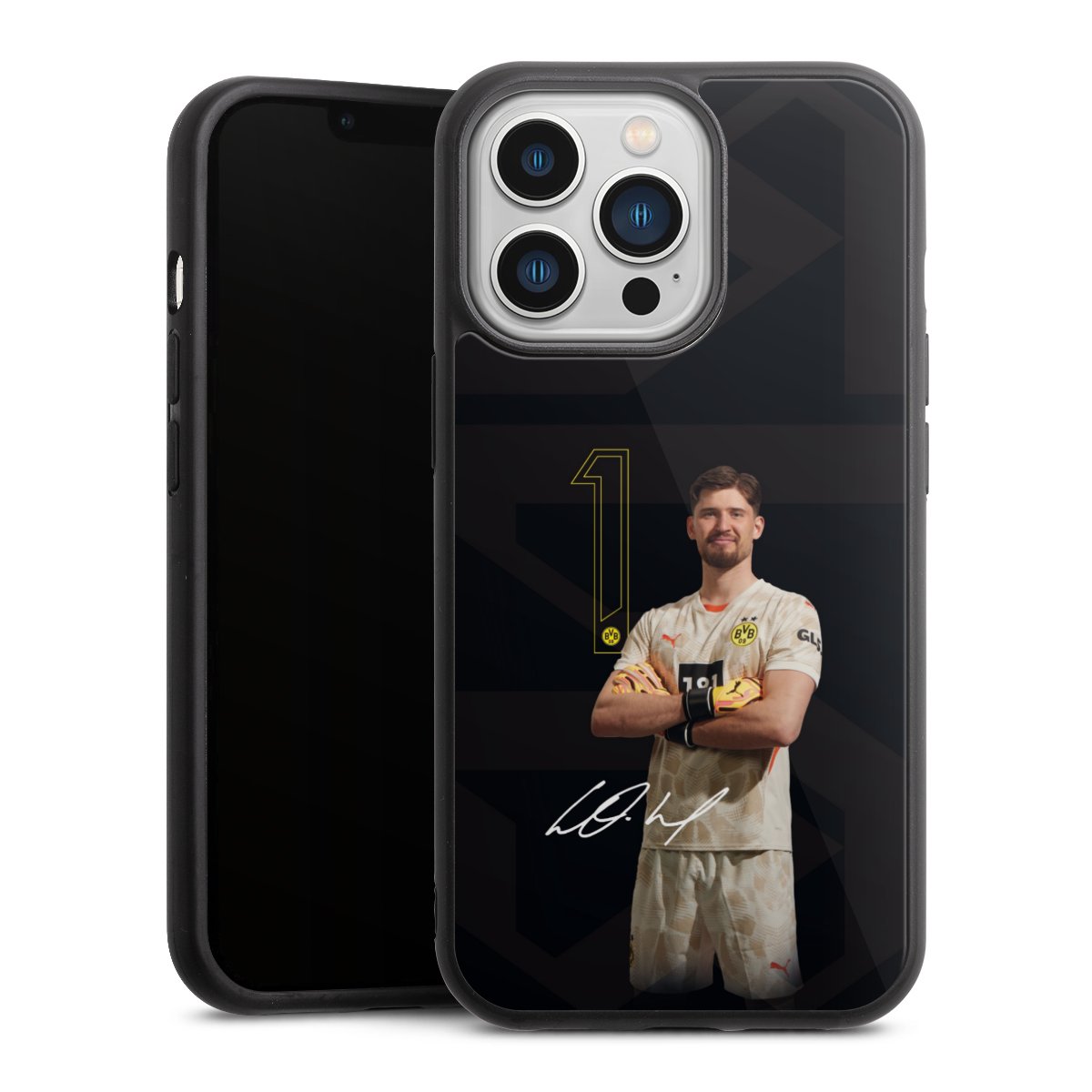 The contrast between the matte black TPU on the sides and the glossy glass surface not only makes the Gallery Case a fest for the eyes, but also a real treat for the hands: The glass gives the phone a pleasantly smooth back and the soft silicone edge provides the necessary grip.
