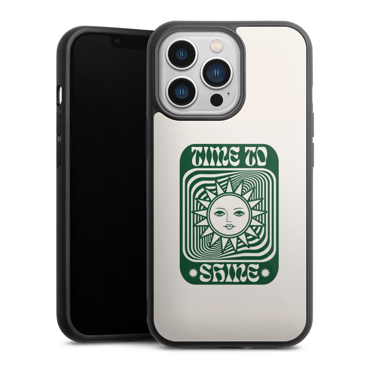 We print your design on the back of the glass inlay and then connect it firmly to the silicone case ,so that nothing sticks out and everything looks like it was cast from one piece. In addition, the sturdy glass element is protected from scratches by an additional coating and ensures a slight reflection on the shiny print image.
