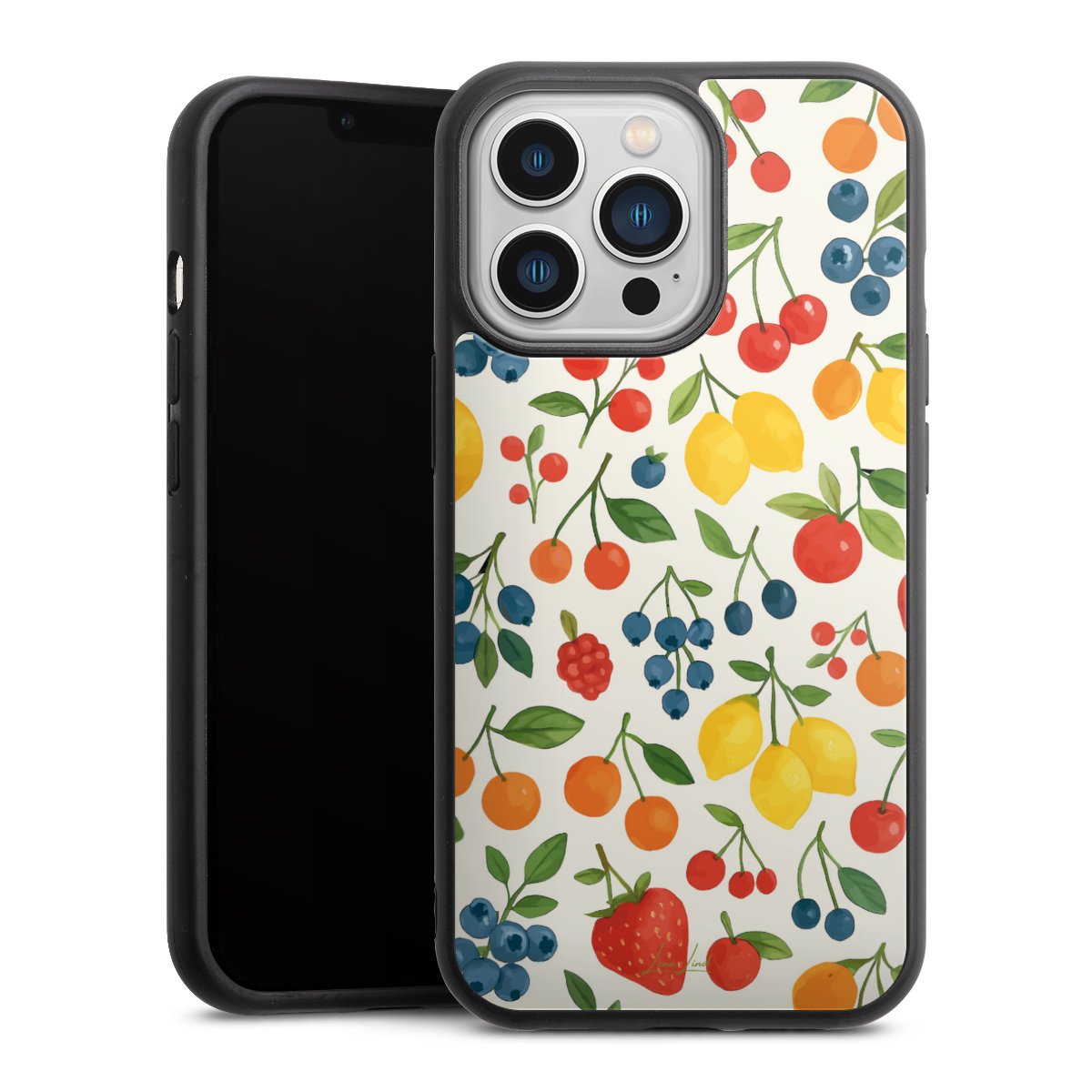 We print your design on the back of the glass inlay and then connect it firmly to the silicone case ,so that nothing sticks out and everything looks like it was cast from one piece. In addition, the sturdy glass element is protected from scratches by an additional coating and ensures a slight reflection on the shiny print image.