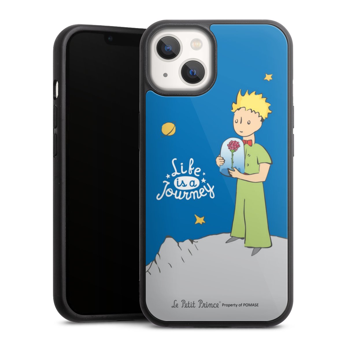 We print your design on the back of the glass inlay and then connect it firmly to the silicone case ,so that nothing sticks out and everything looks like it was cast from one piece. In addition, the sturdy glass element is protected from scratches by an additional coating and ensures a slight reflection on the shiny print image.