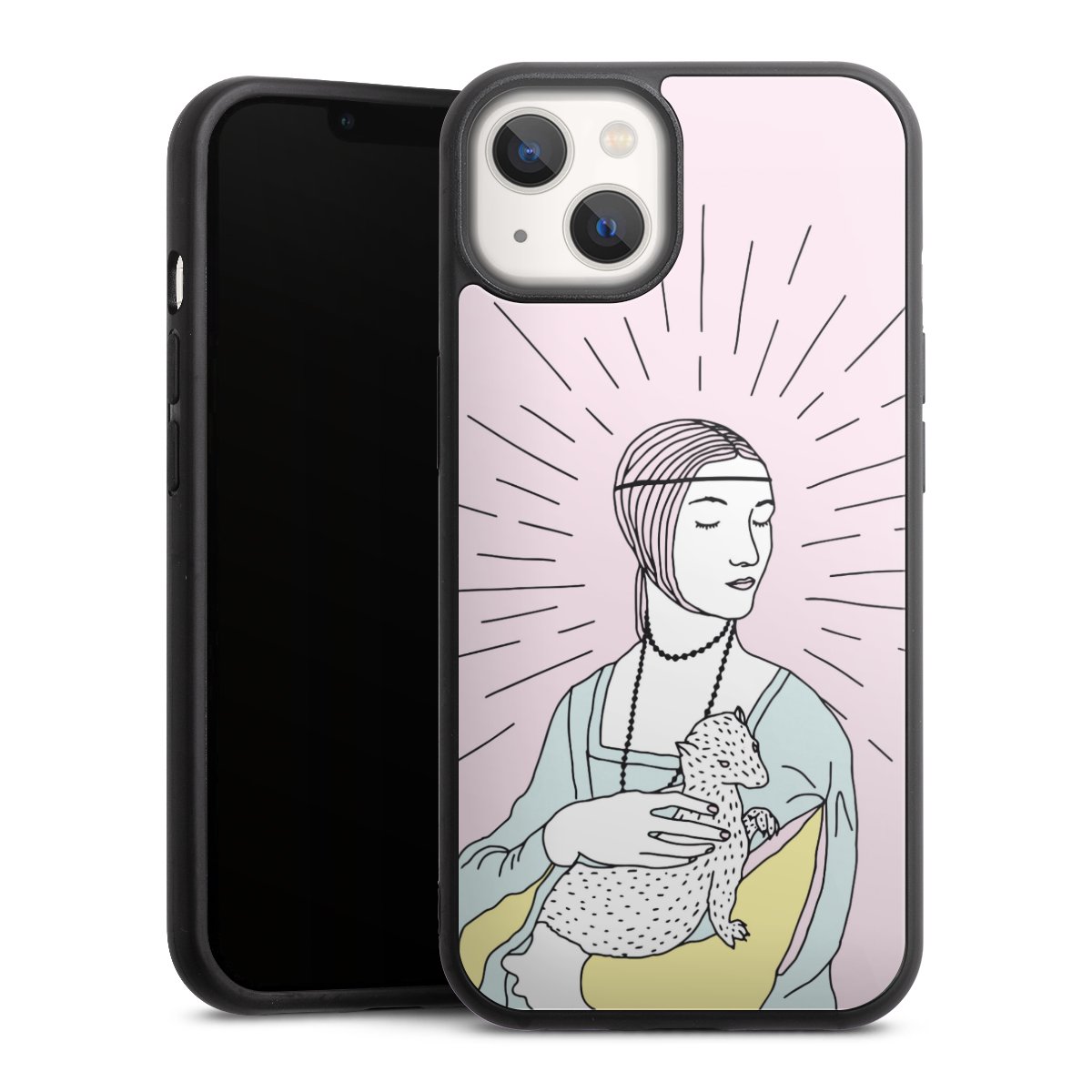 We print your design on the back of the glass inlay and then connect it firmly to the silicone case ,so that nothing sticks out and everything looks like it was cast from one piece. In addition, the sturdy glass element is protected from scratches by an additional coating and ensures a slight reflection on the shiny print image.