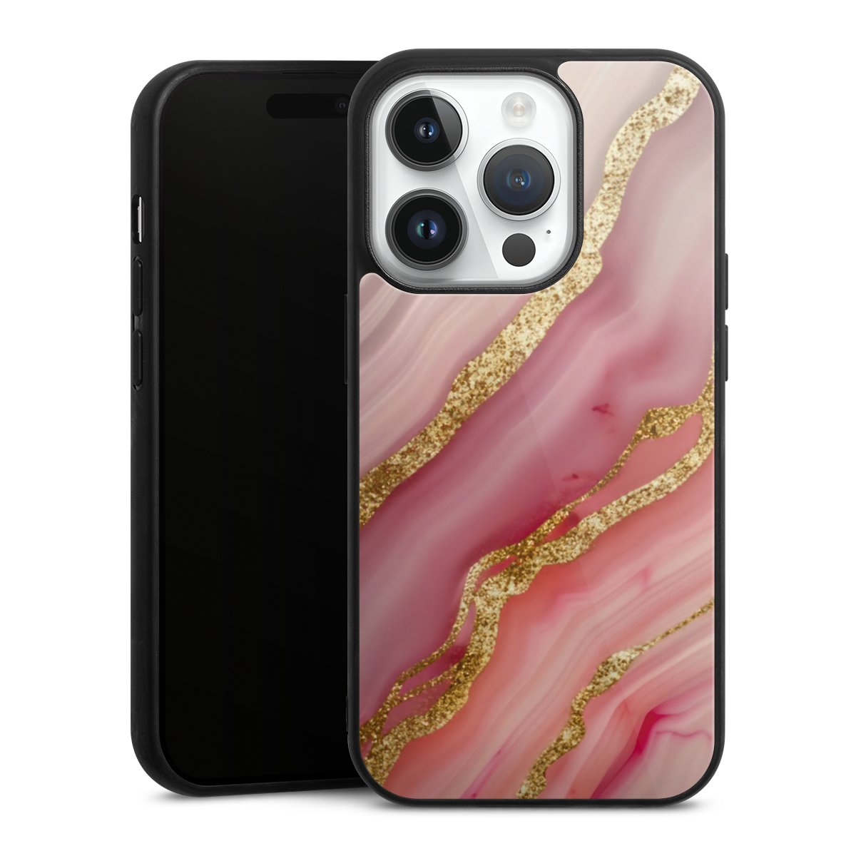 We print your design on the back of the glass inlay and then connect it firmly to the silicone case ,so that nothing sticks out and everything looks like it was cast from one piece. In addition, the sturdy glass element is protected from scratches by an additional coating and ensures a slight reflection on the shiny print image.