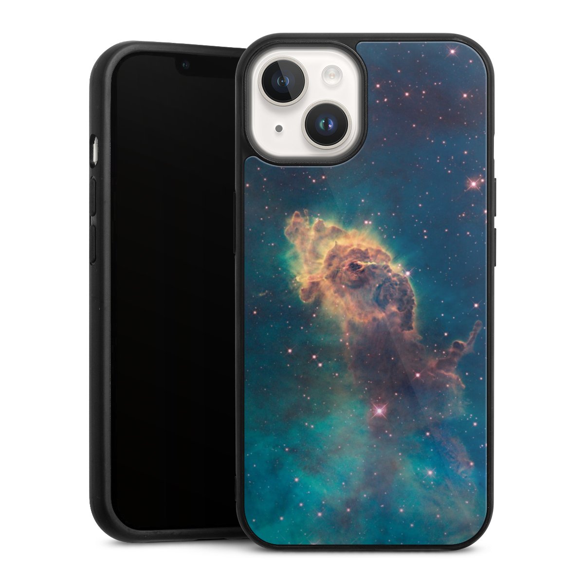 We print your design on the back of the glass inlay and then connect it firmly to the silicone case ,so that nothing sticks out and everything looks like it was cast from one piece. In addition, the sturdy glass element is protected from scratches by an additional coating and ensures a slight reflection on the shiny print image.