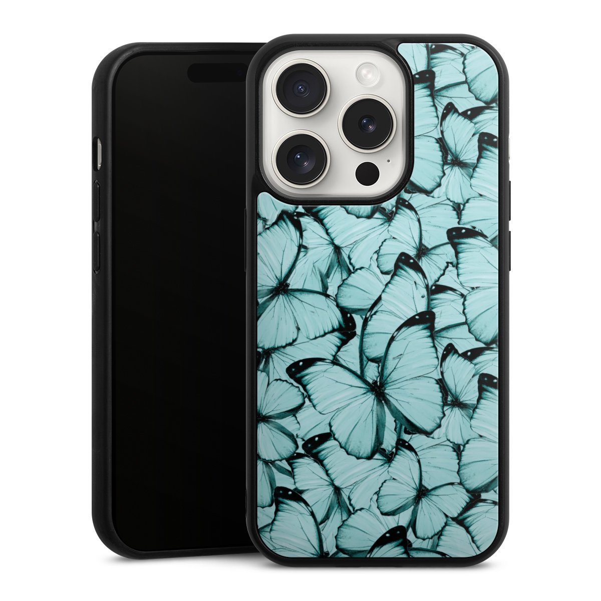 We print your design on the back of the glass inlay and then connect it firmly to the silicone case ,so that nothing sticks out and everything looks like it was cast from one piece. In addition, the sturdy glass element is protected from scratches by an additional coating and ensures a slight reflection on the shiny print image.