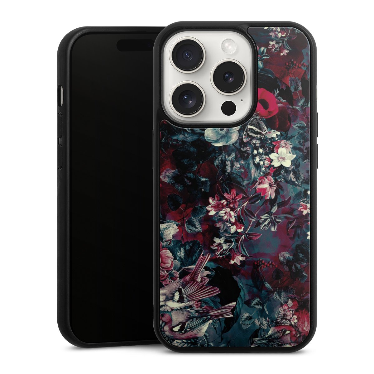 We print your design on the back of the glass inlay and then connect it firmly to the silicone case ,so that nothing sticks out and everything looks like it was cast from one piece. In addition, the sturdy glass element is protected from scratches by an additional coating and ensures a slight reflection on the shiny print image.