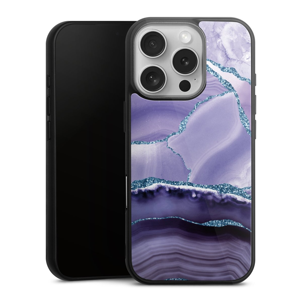 We print your design on the back of the glass inlay and then connect it firmly to the silicone case ,so that nothing sticks out and everything looks like it was cast from one piece. In addition, the sturdy glass element is protected from scratches by an additional coating and ensures a slight reflection on the shiny print image.
