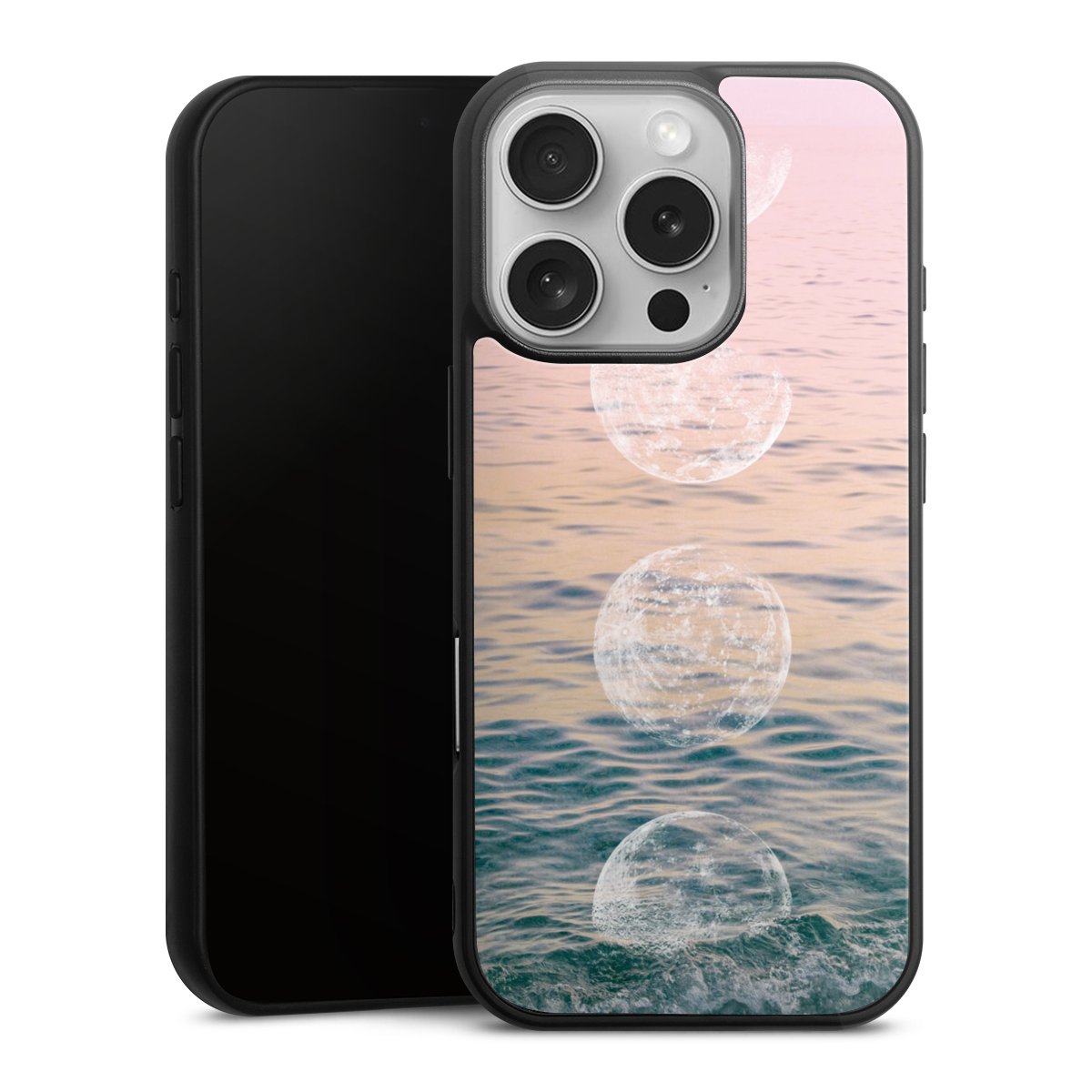 We print your design on the back of the glass inlay and then connect it firmly to the silicone case ,so that nothing sticks out and everything looks like it was cast from one piece. In addition, the sturdy glass element is protected from scratches by an additional coating and ensures a slight reflection on the shiny print image.