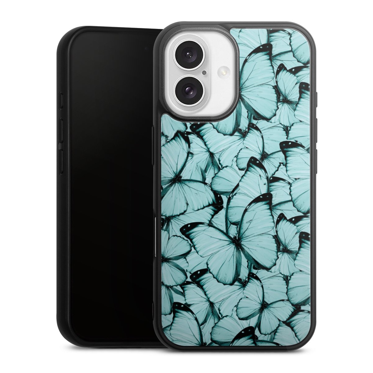 We print your design on the back of the glass inlay and then connect it firmly to the silicone case ,so that nothing sticks out and everything looks like it was cast from one piece. In addition, the sturdy glass element is protected from scratches by an additional coating and ensures a slight reflection on the shiny print image.