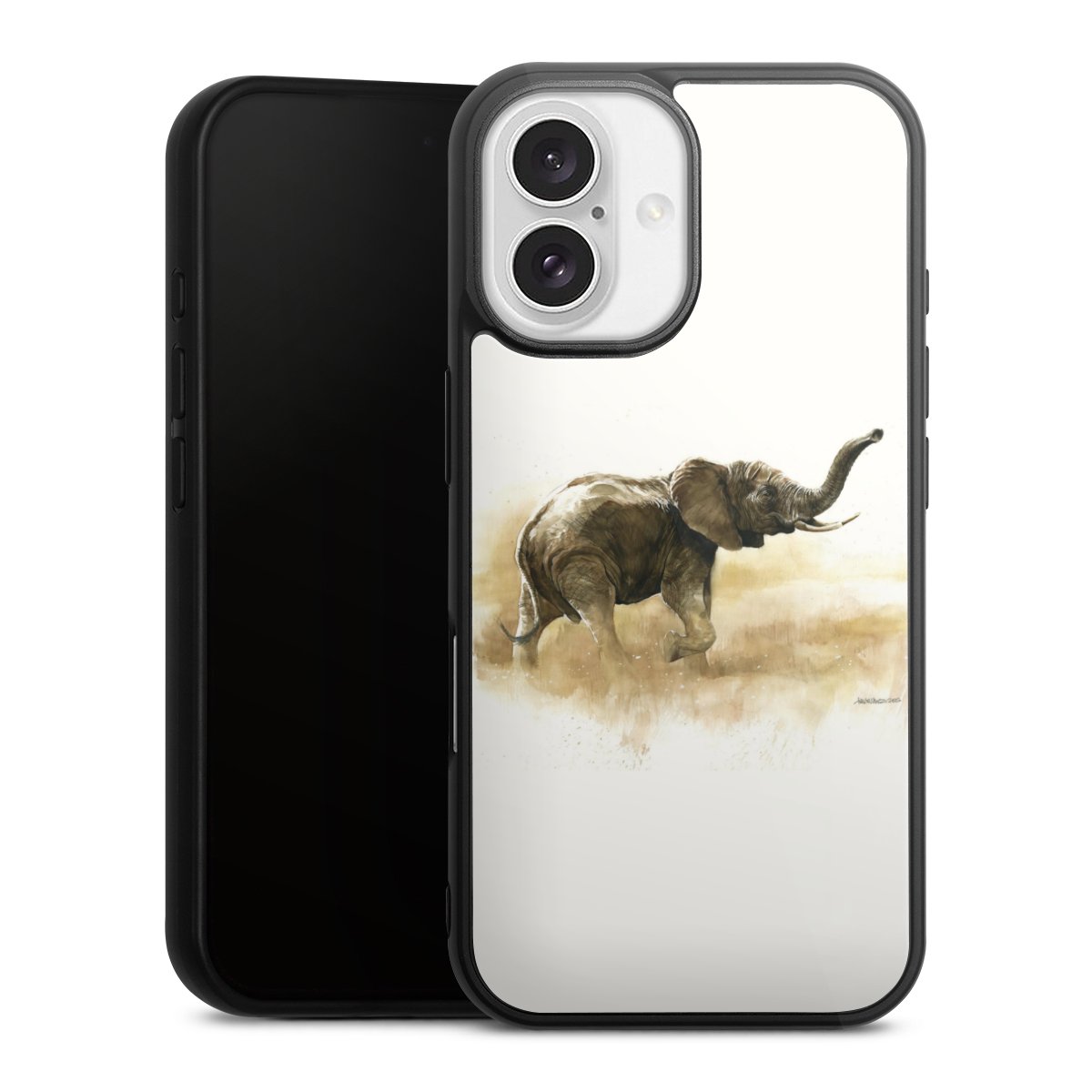 We print your design on the back of the glass inlay and then connect it firmly to the silicone case ,so that nothing sticks out and everything looks like it was cast from one piece. In addition, the sturdy glass element is protected from scratches by an additional coating and ensures a slight reflection on the shiny print image.