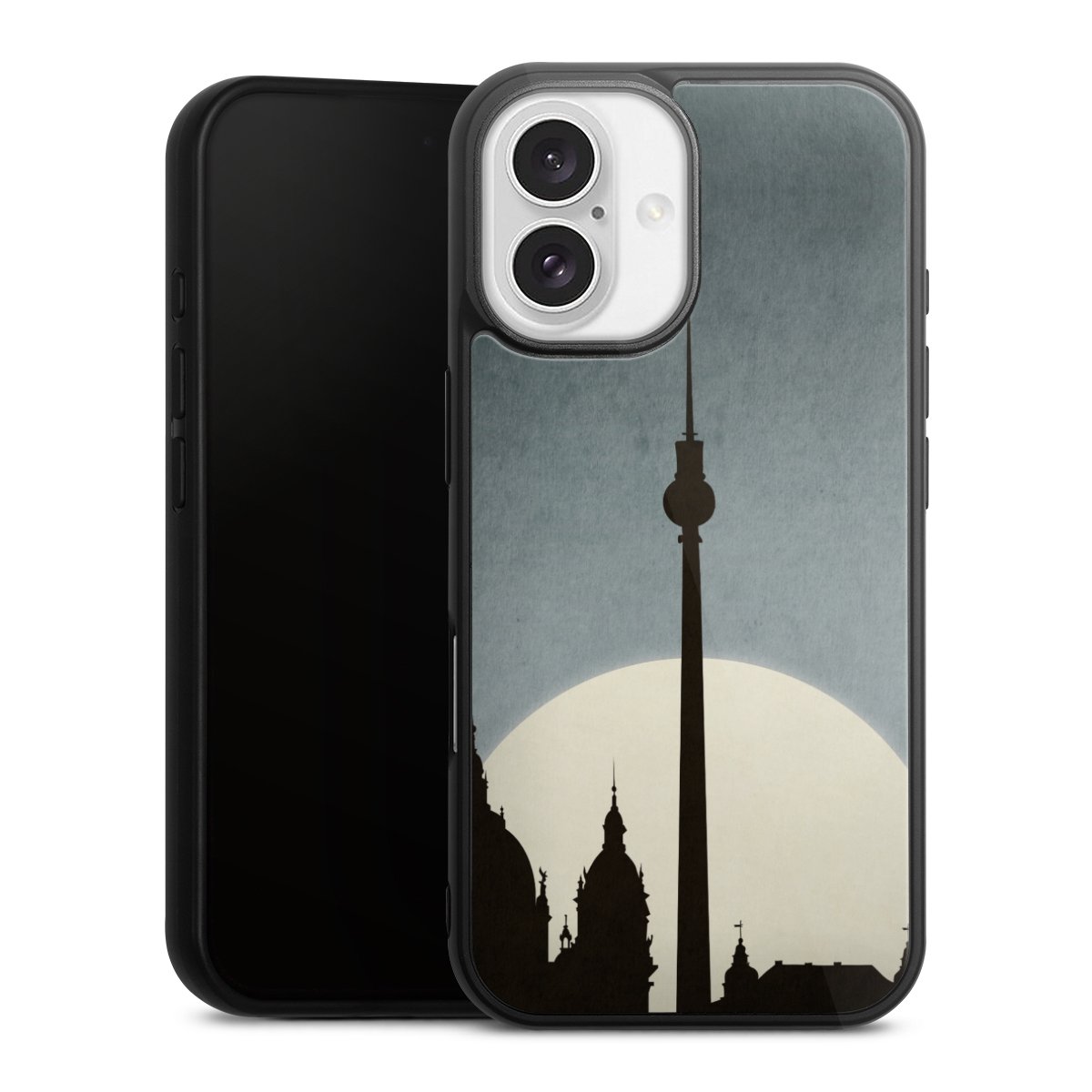 We print your design on the back of the glass inlay and then connect it firmly to the silicone case ,so that nothing sticks out and everything looks like it was cast from one piece. In addition, the sturdy glass element is protected from scratches by an additional coating and ensures a slight reflection on the shiny print image.