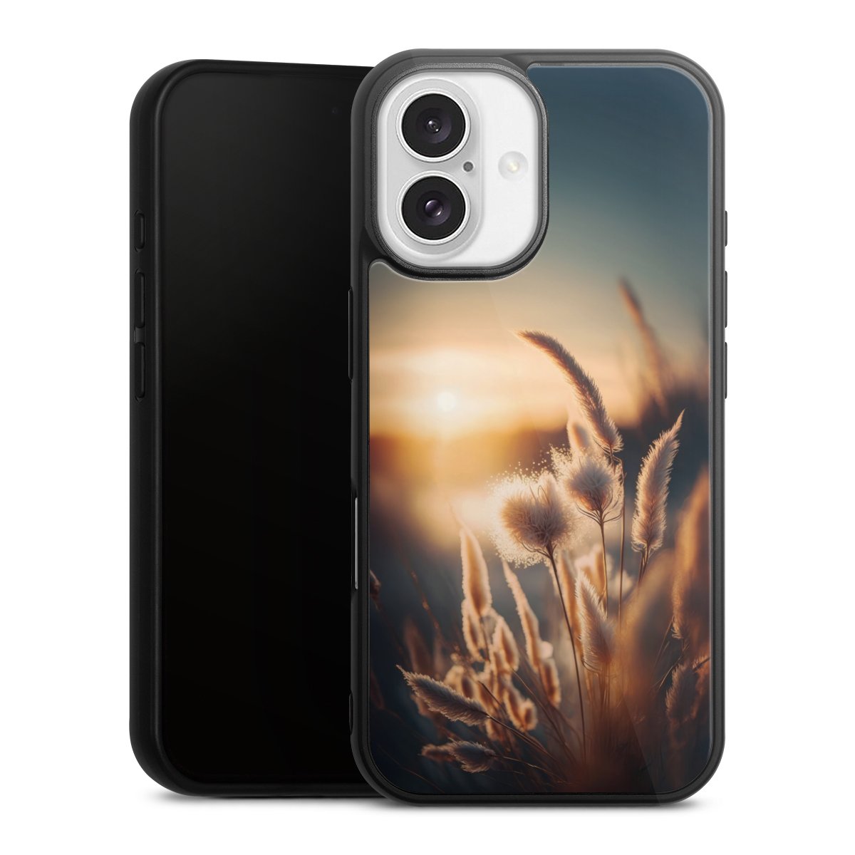 We print your design on the back of the glass inlay and then connect it firmly to the silicone case ,so that nothing sticks out and everything looks like it was cast from one piece. In addition, the sturdy glass element is protected from scratches by an additional coating and ensures a slight reflection on the shiny print image.