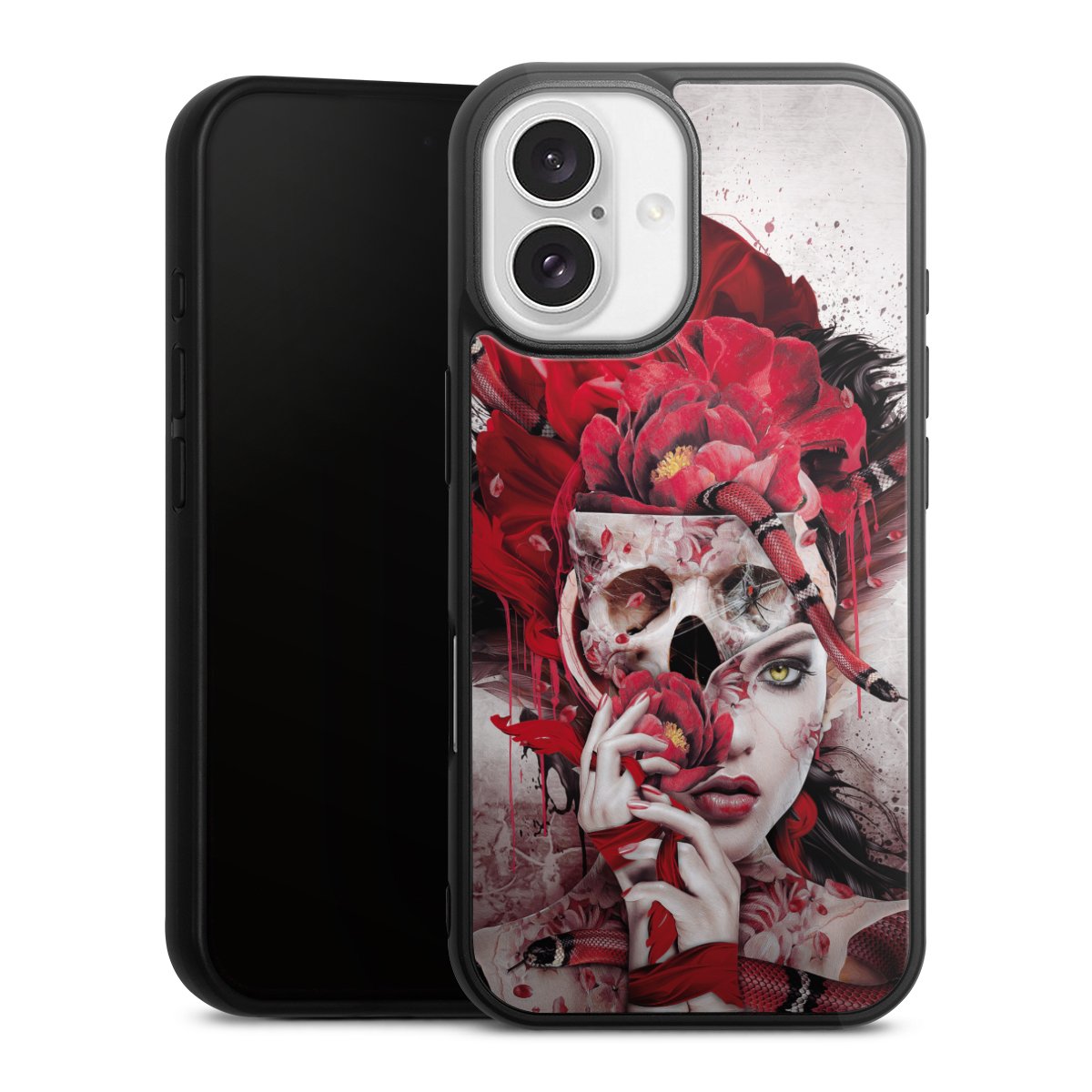 We print your design on the back of the glass inlay and then connect it firmly to the silicone case ,so that nothing sticks out and everything looks like it was cast from one piece. In addition, the sturdy glass element is protected from scratches by an additional coating and ensures a slight reflection on the shiny print image.