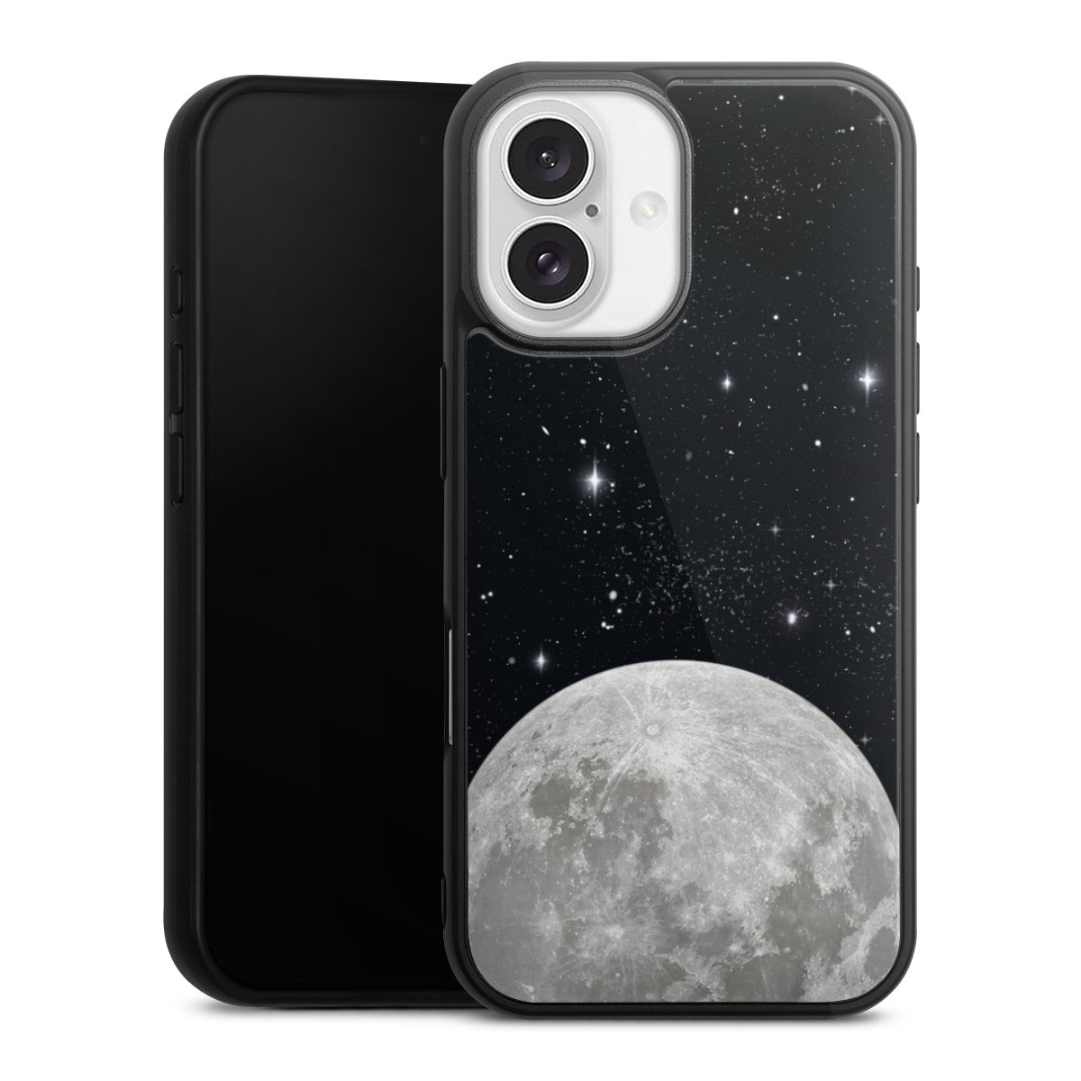 We print your design on the back of the glass inlay and then connect it firmly to the silicone case ,so that nothing sticks out and everything looks like it was cast from one piece. In addition, the sturdy glass element is protected from scratches by an additional coating and ensures a slight reflection on the shiny print image.