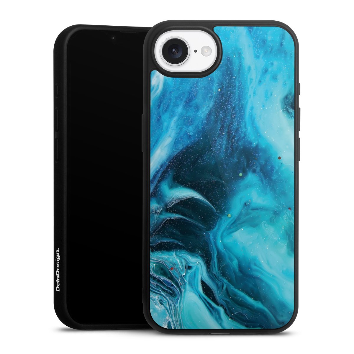 We print your design on the back of the glass inlay and then connect it firmly to the silicone case ,so that nothing sticks out and everything looks like it was cast from one piece. In addition, the sturdy glass element is protected from scratches by an additional coating and ensures a slight reflection on the shiny print image.