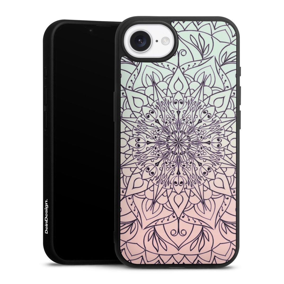We print your design on the back of the glass inlay and then connect it firmly to the silicone case ,so that nothing sticks out and everything looks like it was cast from one piece. In addition, the sturdy glass element is protected from scratches by an additional coating and ensures a slight reflection on the shiny print image.