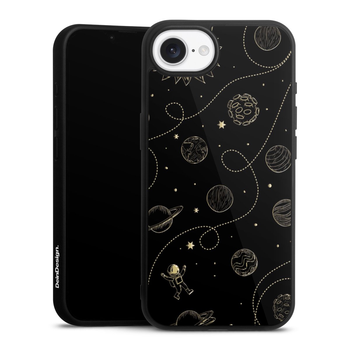 We print your design on the back of the glass inlay and then connect it firmly to the silicone case ,so that nothing sticks out and everything looks like it was cast from one piece. In addition, the sturdy glass element is protected from scratches by an additional coating and ensures a slight reflection on the shiny print image.
