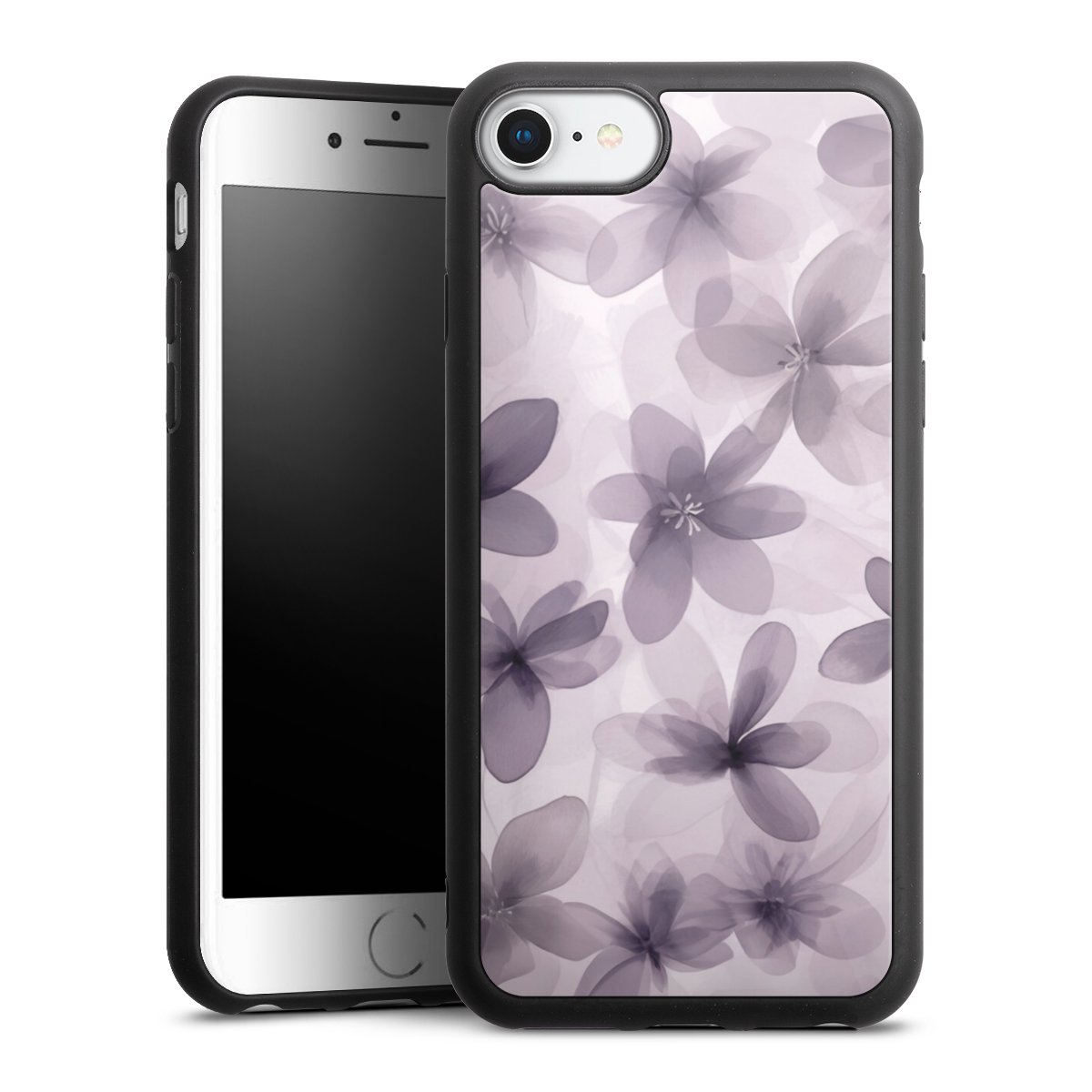 We print your design on the back of the glass inlay and then connect it firmly to the silicone case ,so that nothing sticks out and everything looks like it was cast from one piece. In addition, the sturdy glass element is protected from scratches by an additional coating and ensures a slight reflection on the shiny print image.