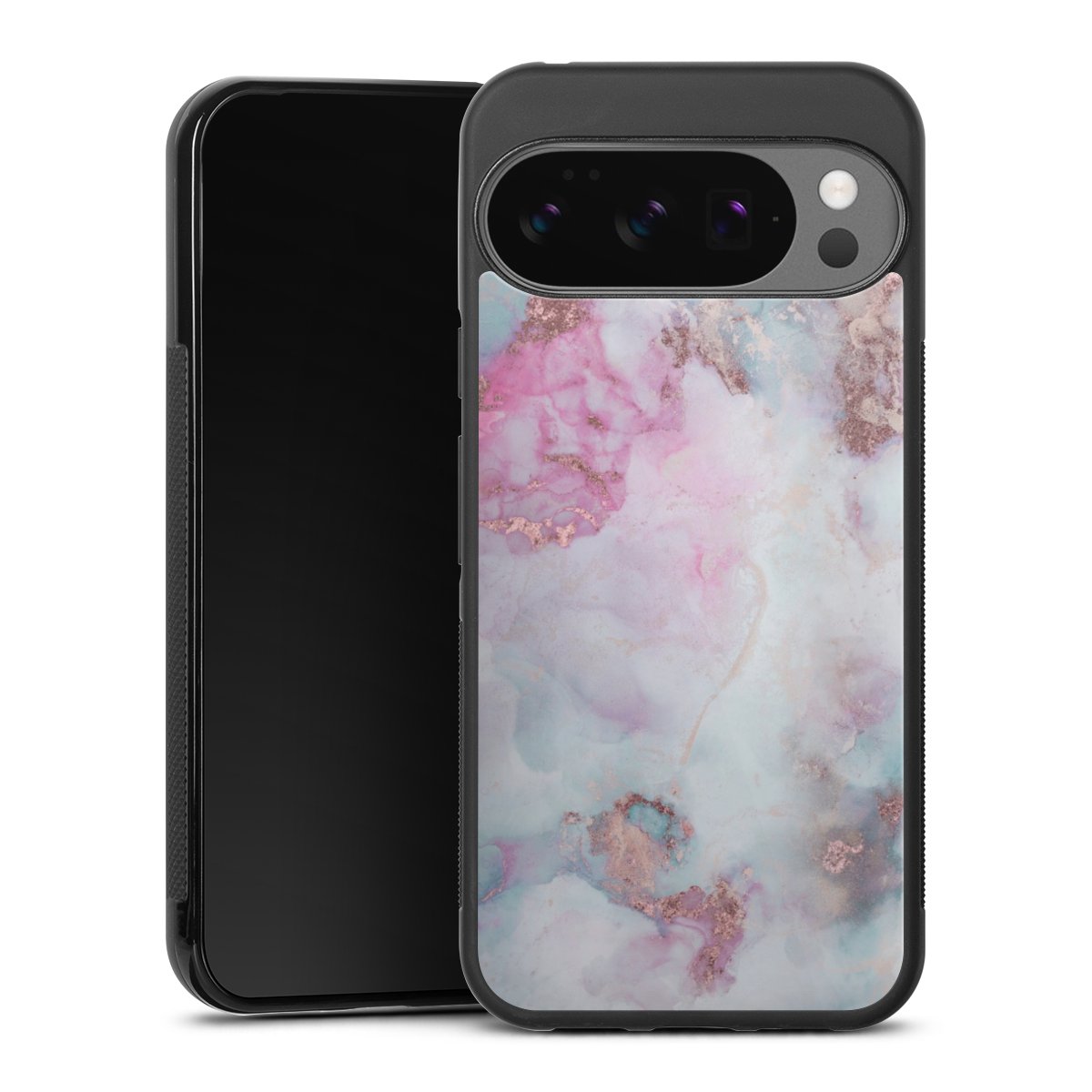 The contrast between the matte black TPU on the sides and the glossy glass surface not only makes the Gallery Case a fest for the eyes, but also a real treat for the hands: The glass gives the phone a pleasantly smooth back and the soft silicone edge provides the necessary grip.