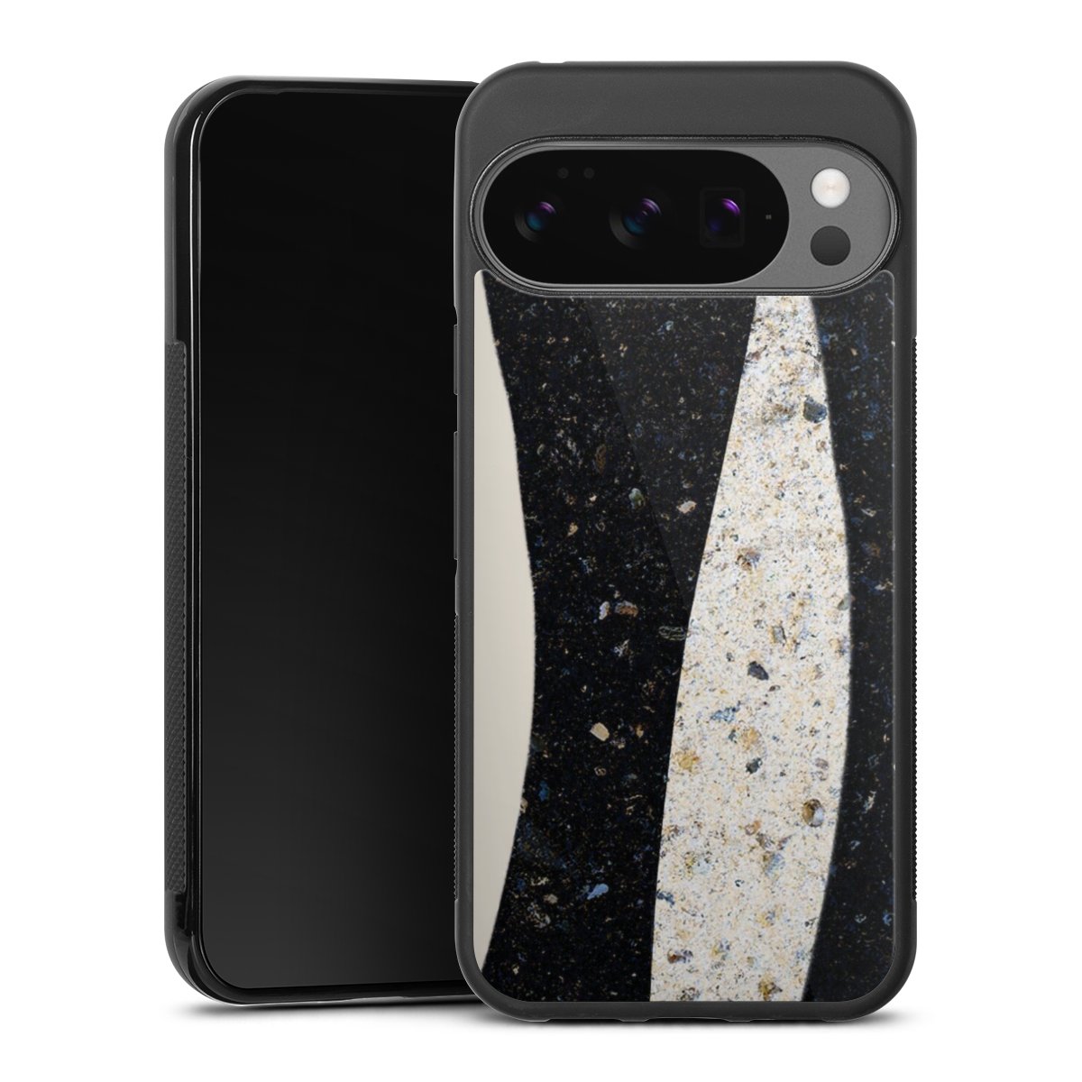 The contrast between the matte black TPU on the sides and the glossy glass surface not only makes the Gallery Case a fest for the eyes, but also a real treat for the hands: The glass gives the phone a pleasantly smooth back and the soft silicone edge provides the necessary grip.