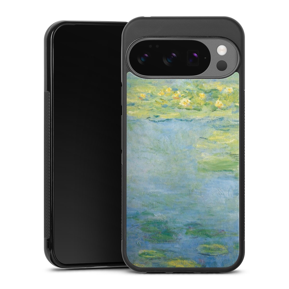 We print your design on the back of the glass inlay and then connect it firmly to the silicone case ,so that nothing sticks out and everything looks like it was cast from one piece. In addition, the sturdy glass element is protected from scratches by an additional coating and ensures a slight reflection on the shiny print image.