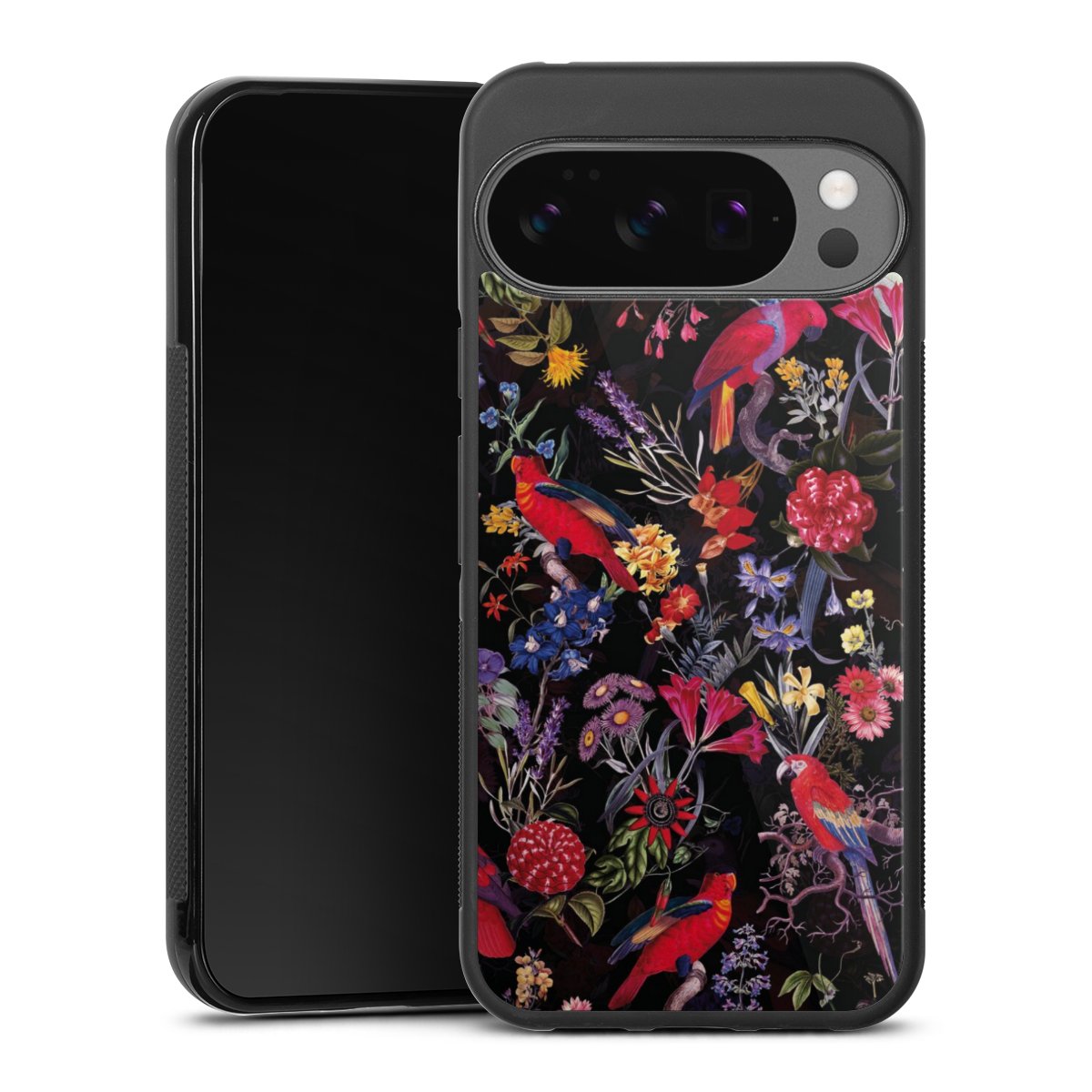 Dark Flowers and Parrots