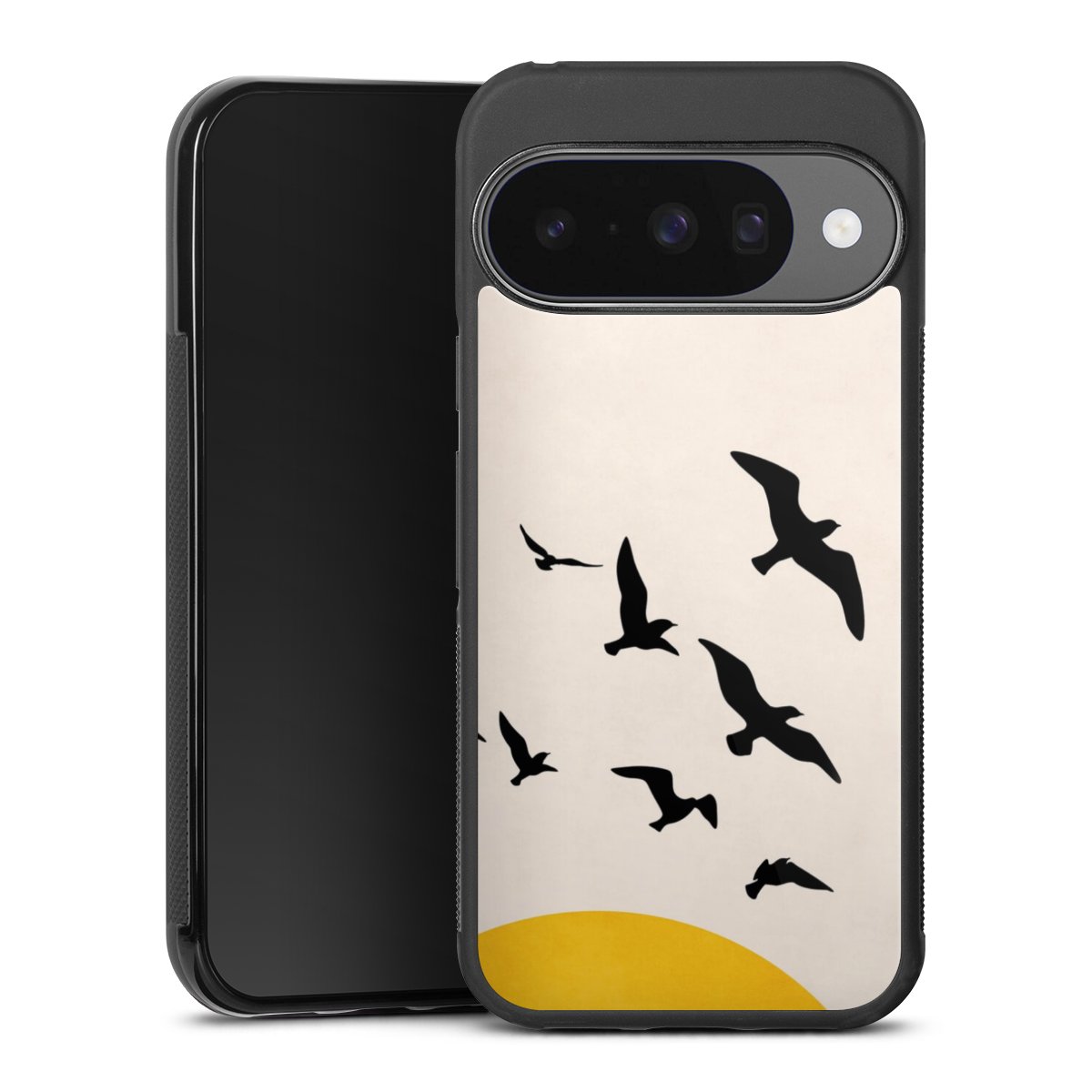 We print your design on the back of the glass inlay and then connect it firmly to the silicone case ,so that nothing sticks out and everything looks like it was cast from one piece. In addition, the sturdy glass element is protected from scratches by an additional coating and ensures a slight reflection on the shiny print image.