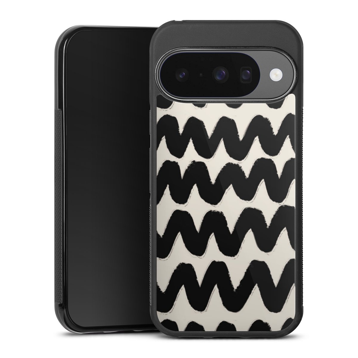The contrast between the matte black TPU on the sides and the glossy glass surface not only makes the Gallery Case a fest for the eyes, but also a real treat for the hands: The glass gives the phone a pleasantly smooth back and the soft silicone edge provides the necessary grip.
