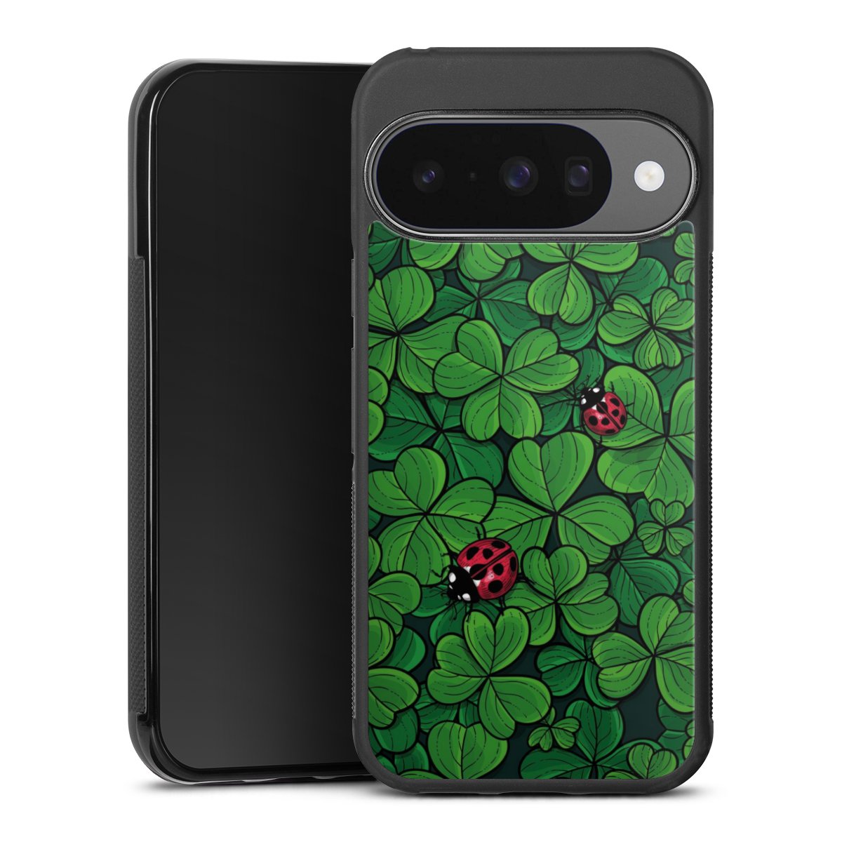 We print your design on the back of the glass inlay and then connect it firmly to the silicone case ,so that nothing sticks out and everything looks like it was cast from one piece. In addition, the sturdy glass element is protected from scratches by an additional coating and ensures a slight reflection on the shiny print image.