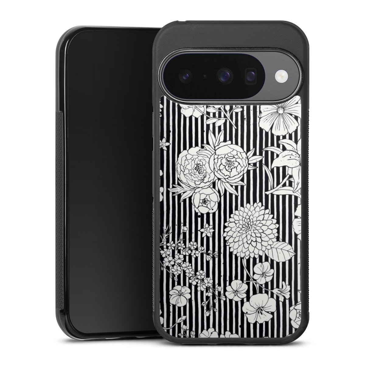 Flowers and Stripes Black and White